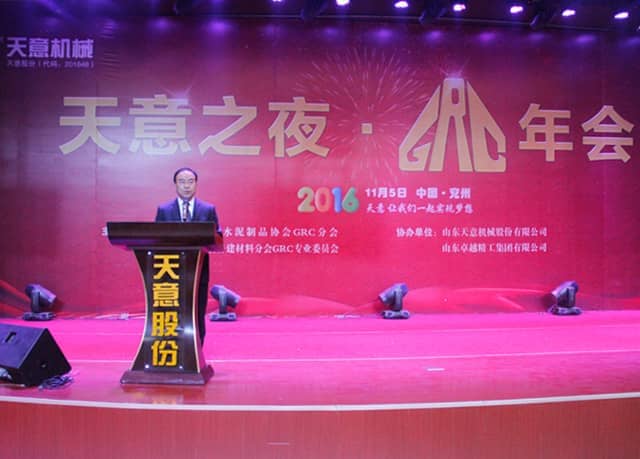 為加快GRC技術創(chuàng)新,積極適應經(jīng)濟新常態(tài),2016年11月5日,2016 GRC年會暨裝配式建筑發(fā)展研討會在山東圣德酒店盛大召開,本次會議由GRC協(xié)會及專業(yè)委員會主辦,山東天意機械股份有限公司協(xié)辦。